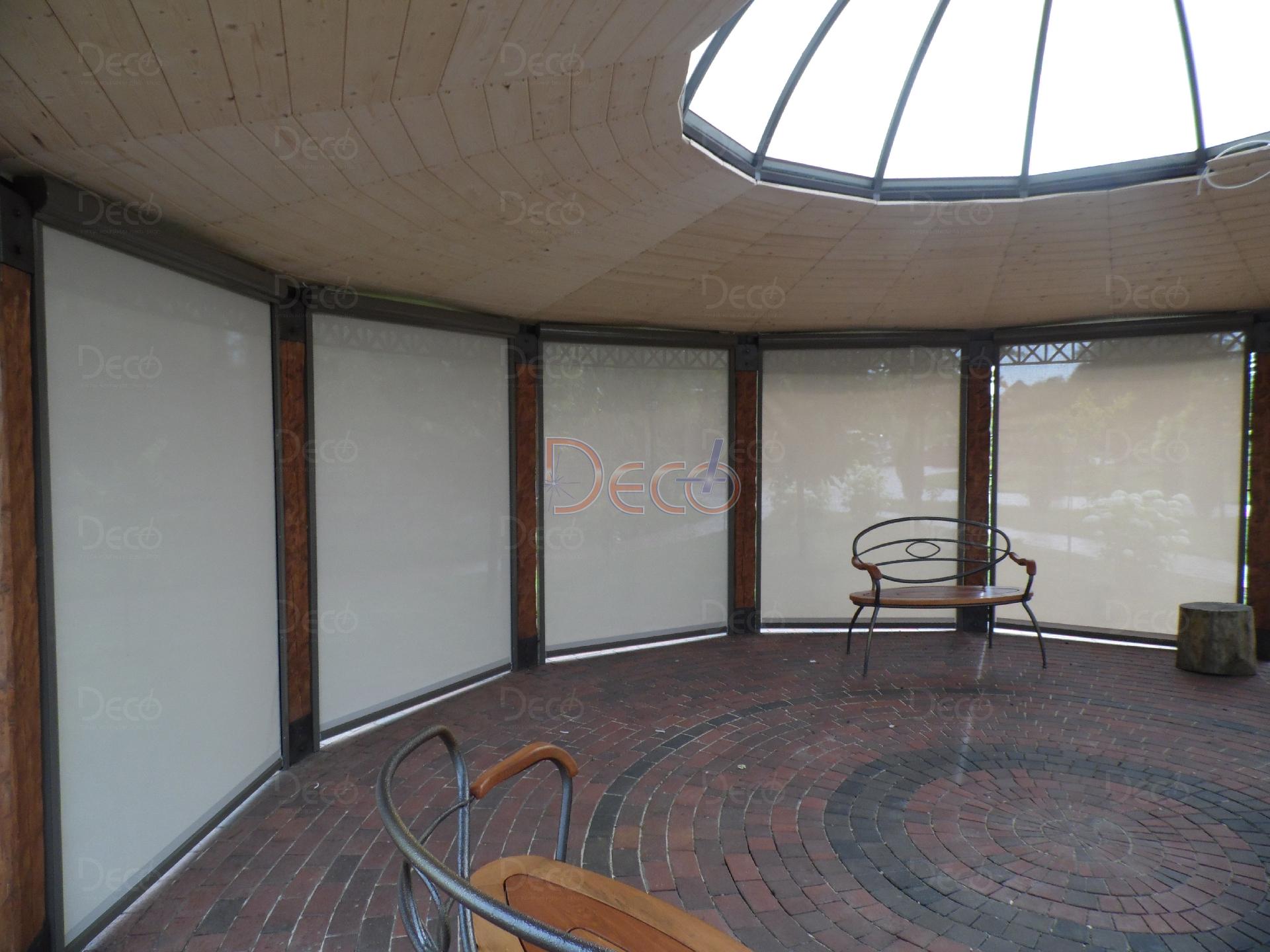 Система ZIPLINE 120 (с коробом высотой 120 мм) применяется для защиты от солнца и насекомых больших площадей — широких открытых проемов, террас, веранд, пергол и беседок. Управление осуществляется с помощью электродвигателя Somfy.